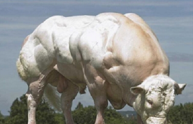 比利時藍牛是一種雜交牛,是比利時本土牛與英國的短角牛雜交后產(chǎn)生的肌肉怪物。它們和一般牛不太一樣,主要表現(xiàn)在極端生長的肌肉。它們的腰部,臀部,肩部,背部的肌肉都比一般牛發(fā)達得多