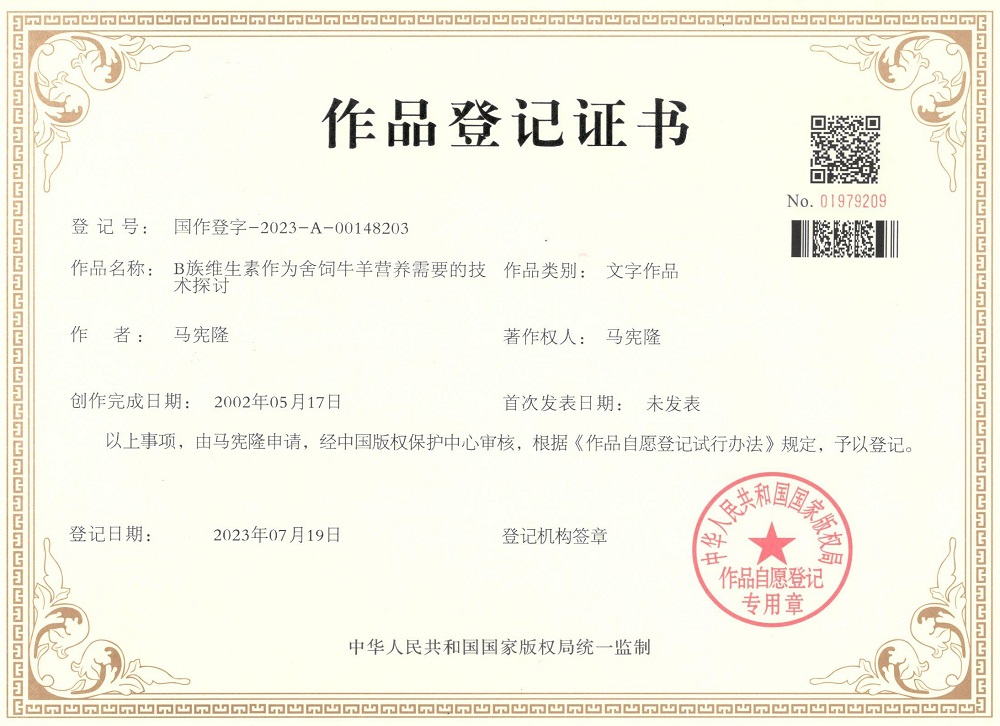 B族維生素的技術探討登記證書