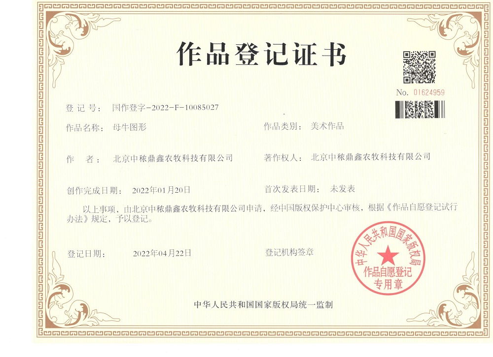 母牛圖形作品登記證書